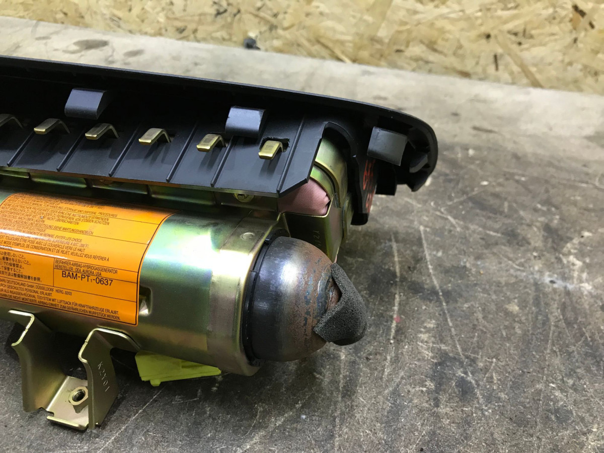 В сборе с пиропатроном. Деталь снята с японской версии авто.