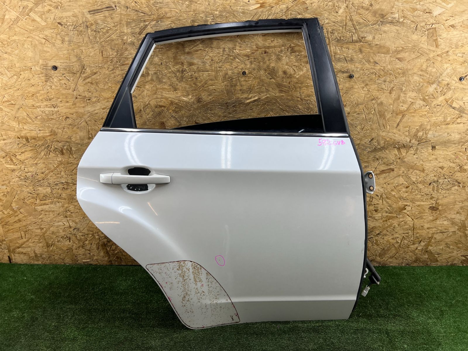 Дверь задняя правая. Имеется не большой дефект. Широкий кузов. Цвет: 37J Без ветровика. Комплектация: стекло, стеклоподъемник, петли, ручка наружная, замок, проводка, обшивка