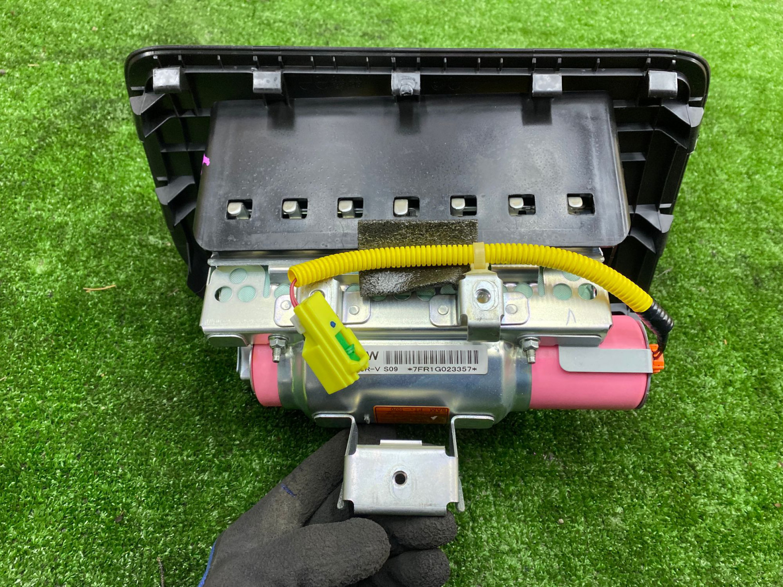 В сборе с пиропатроном. Деталь снята с японской версии авто.